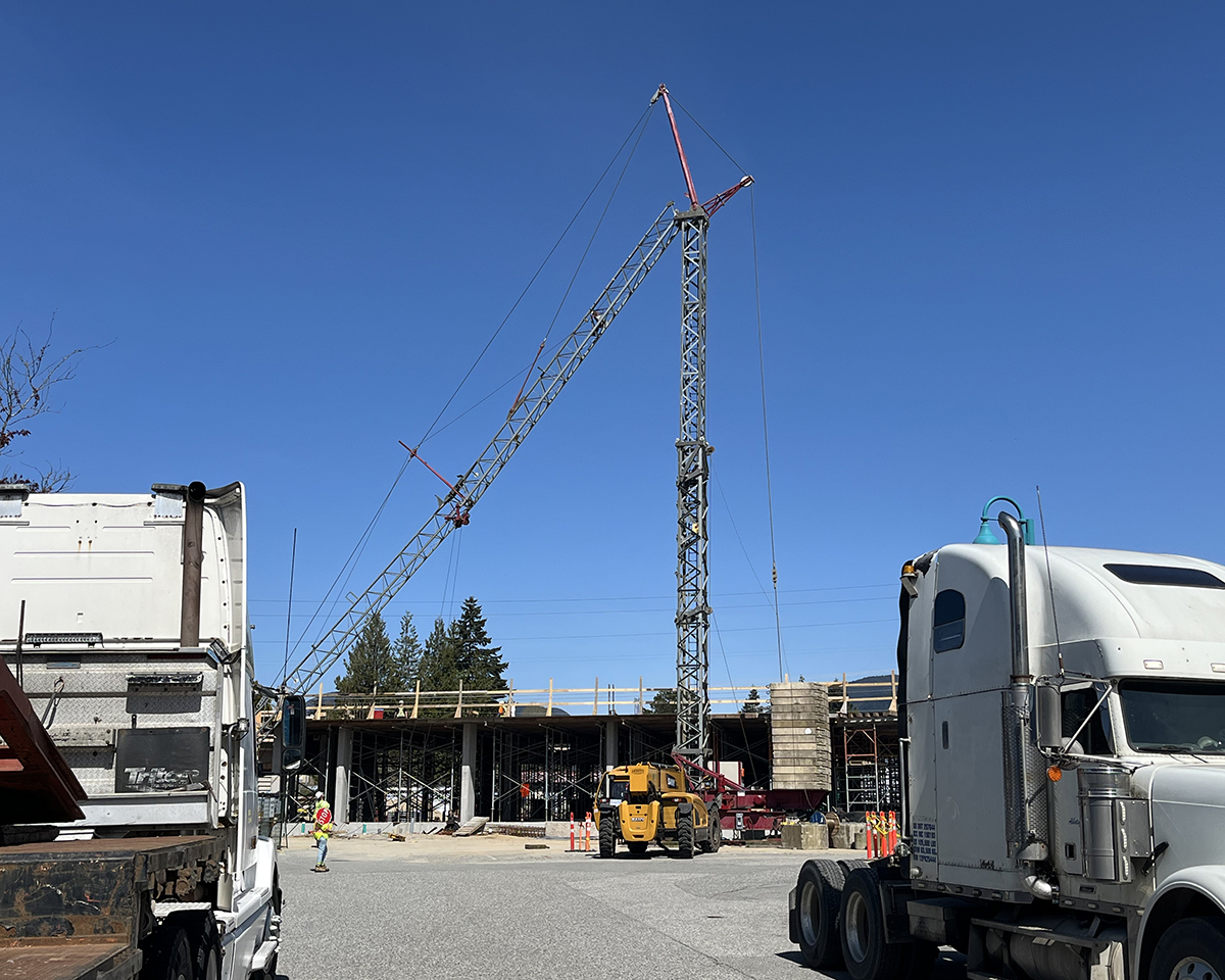 Another milestone reached at the Building Together site! Last week, the crane was installed – just in time as work begins on forming the second-floor slab of our new community services and affordable housing hub here in Sechelt!